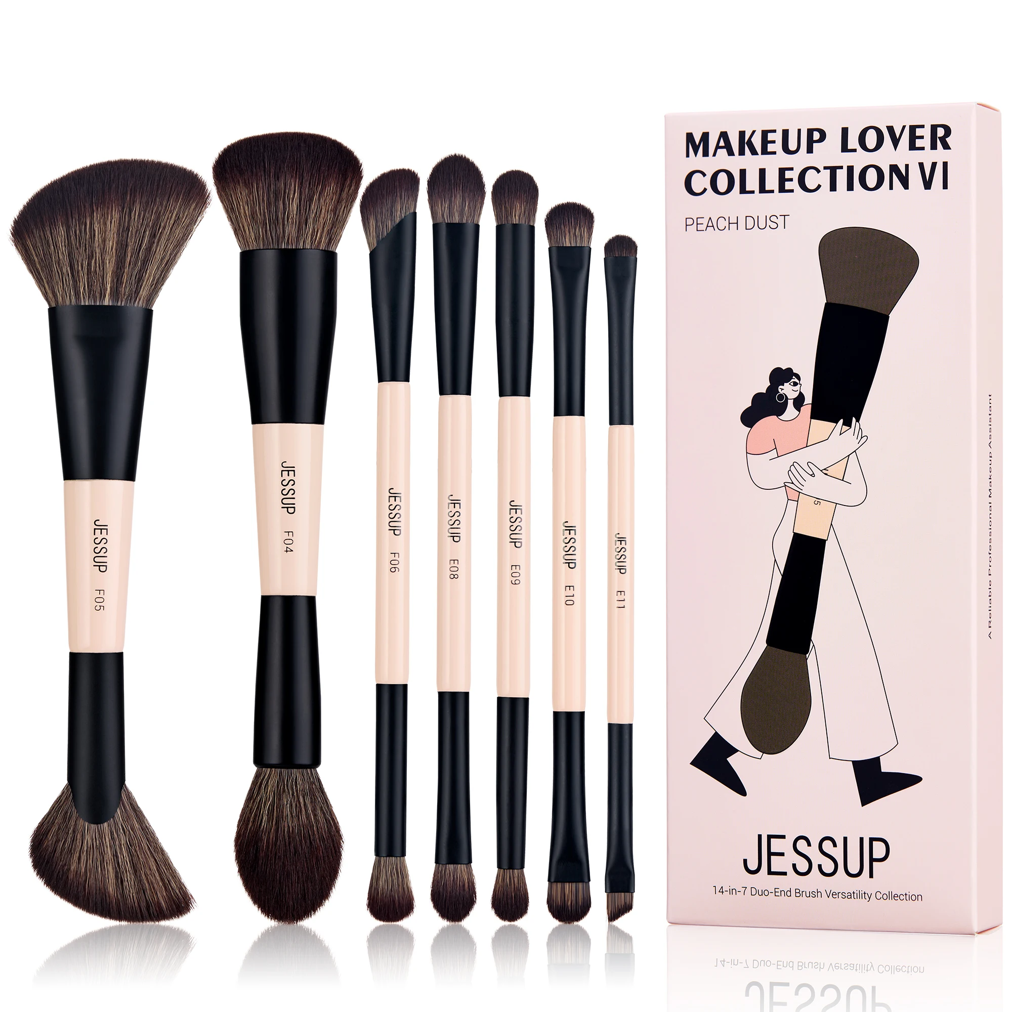Ensemble de pinceaux de maquillage Jessup (4/6/7/10/14/15 pièces) : pinceau fond de teint, fard à paupières, estompeur, highlighter, correcteur, violet luxueux