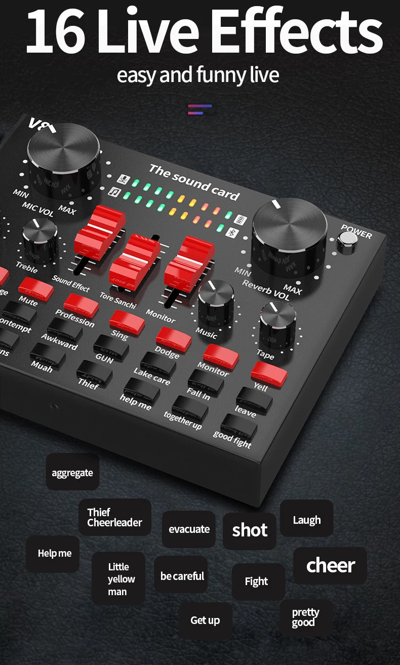 1. Carte son avec plusieurs fonctions, 16 types d’effets sonores, 8 types de modes d’effets.